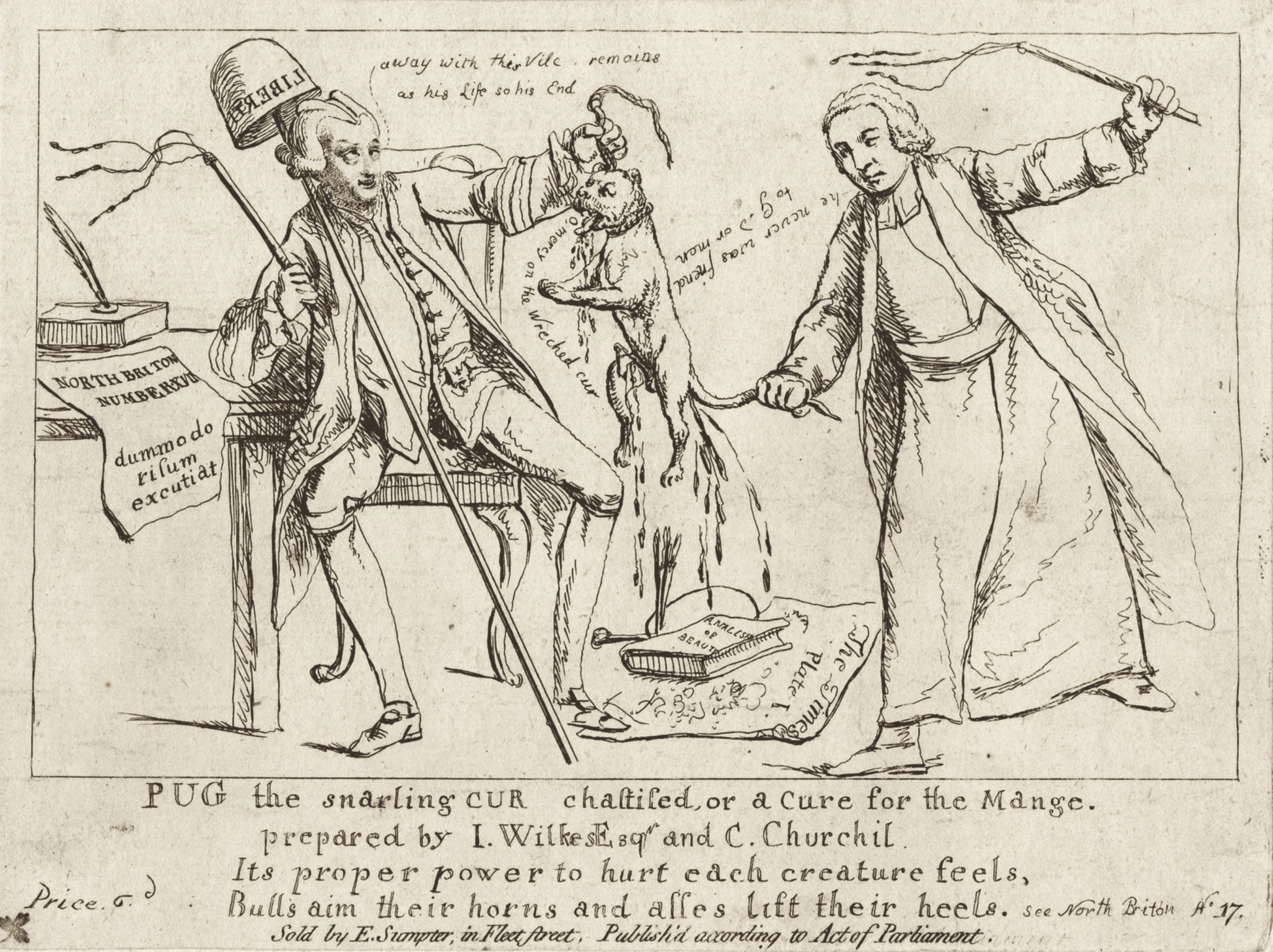Pug the snarling Cur chastised, or a Cure for the Mange. prepared by J. Wilkes Esqr and C. Churchil (London: sold by E. Sumpter, [1763]). British Museum