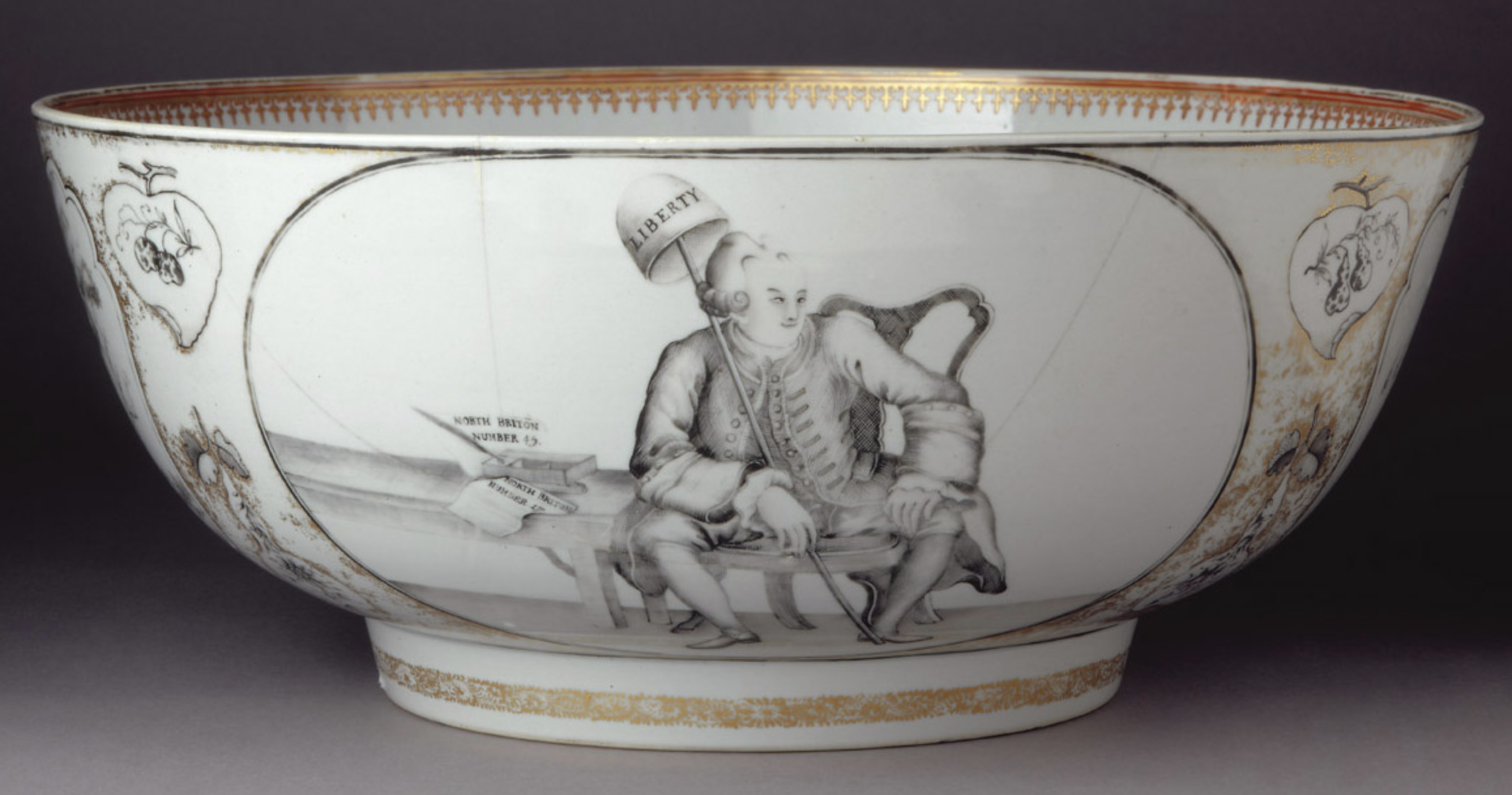 Punch bowl commemorating John Wilkes, Jingdezhen, China, ca. 1764–70, Winterthur Museum, Garden, & Library, Bequest of Henry Francis du Pont, 1960