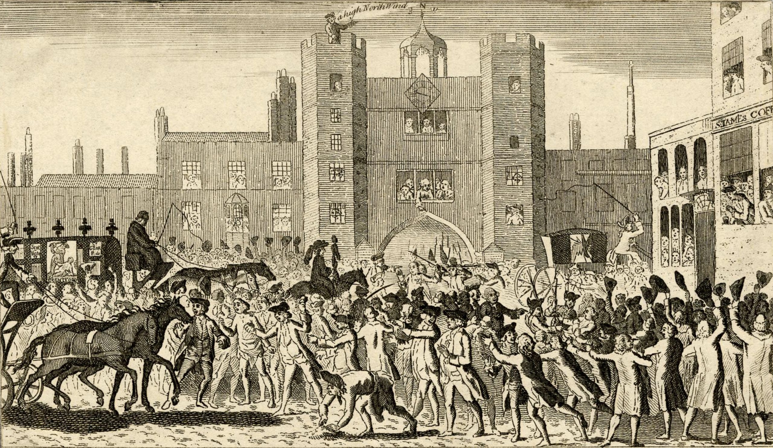 After securing his election Wilkes surrendered to the authorities to face trial. As soon as he was jailed a crowd of as many as 15,000 demonstrated outside the prison. In the resulting confrontation between the crowd and troops sent to maintain order at least six protestors and bystanders were killed. Dubbed the “St. George’s Field Massacre,” the incident galvanized popular support for Wilkes. He was nonetheless convicted and spent twenty-two months in prison, during which he was expelled from the House of Commons. Claiming that a corrupt ministry was interfering with the right of freeholders to the representative of their choice, Wilkes was re-elected three successive times between February and April 1769. Parliament declared each election void and finally seated his opponent.